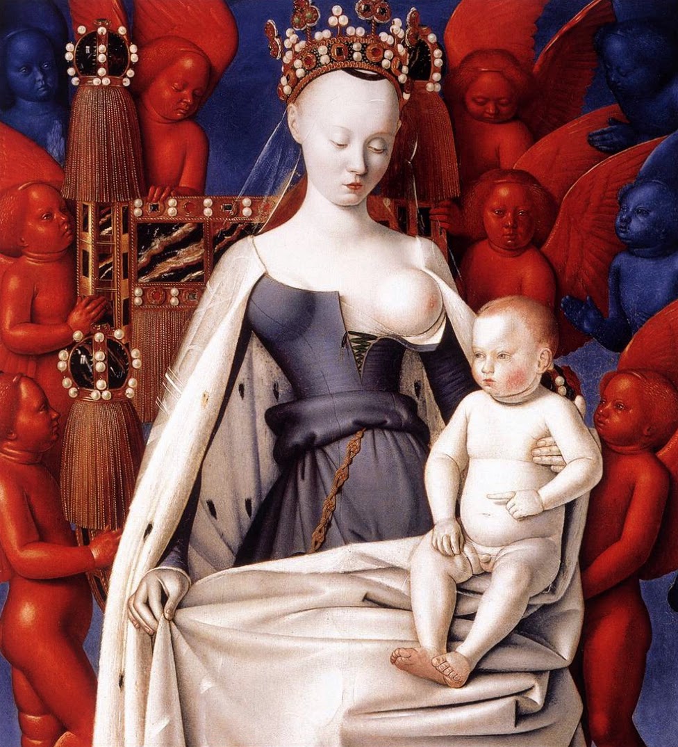 Собственно, Прекрасная дама, как помнит большинство с уроков литературы (ну, по крайней мере, в гимназии или вузе), либо из энциклопедий — это образ женщины, которую почитает рыцарь, но она для него недоступна, так как замужем за кем-то покруче. В трактовке Ортеоса Прекрасная дама, которую воспевали трубадуры — это языческая богиня под видом земной женщины или Богородицы. Особенно образ стал популярен в эпоху Воз(вы)рождения, когда католики начали рисовать Деву Марию в более фривольном, чем на традиционной иконографии, виде: как минимум, с распущенными волосами, а то и совсем уж странно.